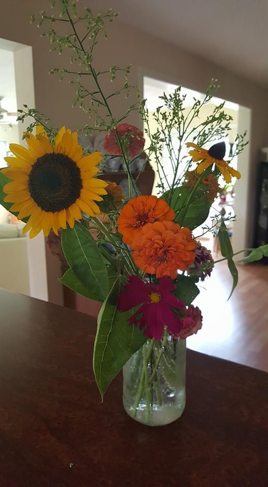 Flowers inspire emotion. This past week, we invited our neighbors for dinner on the patio. He came in carrying a pie and she came carrying a beautiful arrangement of dahlias that she had grown in the back yard. I love pie, but my heart went immediately to the flowers. They are stunning and they sing of friendship and thoughtfulness.