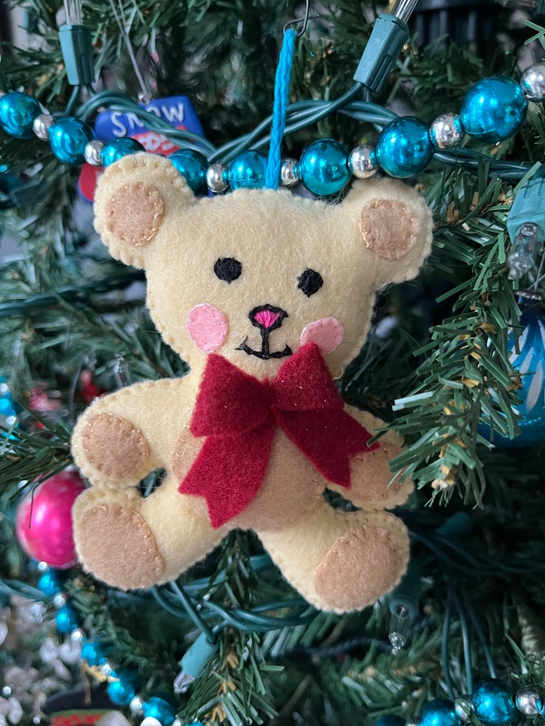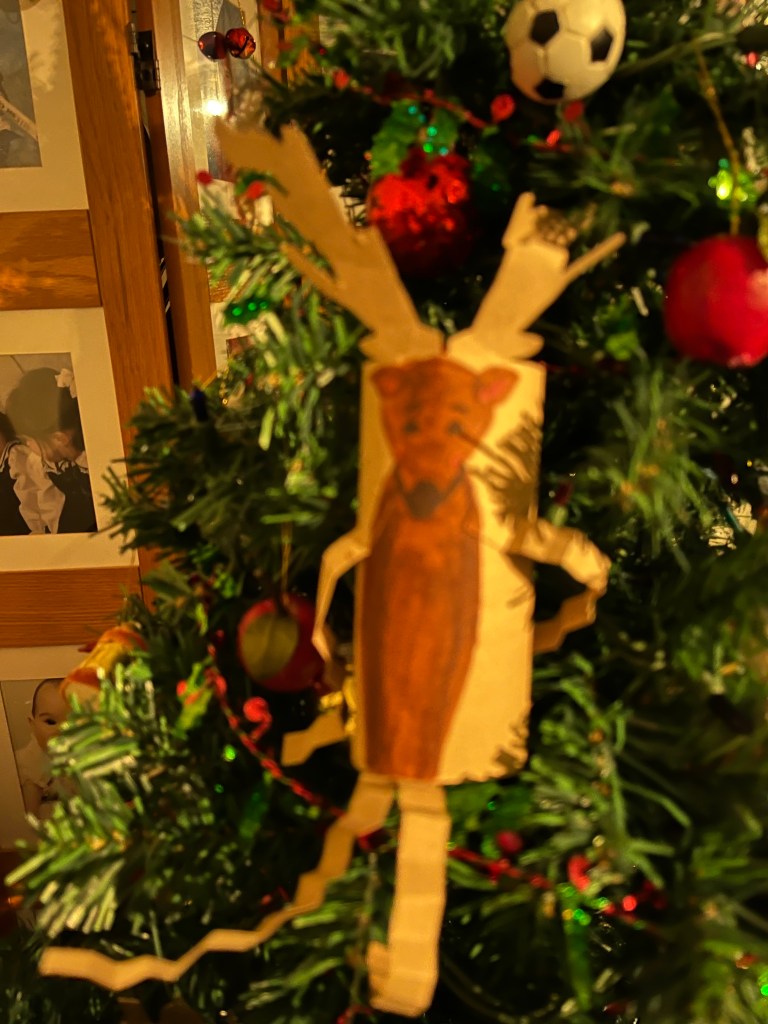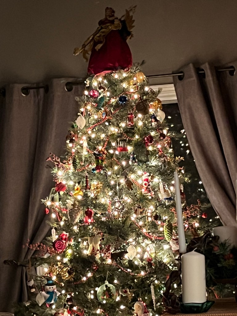 The family room is home to the friendship tree. It is full of sports memorabilia and ornaments given by students and colleagues. There are several “world’s best teacher” ornaments etched in gold, and a strange handmade ornament in the shape of a lightbulb holding a photo of my husband in his classroom. The tree also hosts ornaments that have enormous sentimental value, but aren’t much to look at. A tweety bird from my aunt who died of cancer is now almost featherless. A cardinal from my maternal grandmother’s tree has chips and dings. Jingle bells with foil ribbons and fading felt stockings from my paternal grandmother’s tree have seen better days. I am sure that each year may be their last, but they endure. Each new sign of decay somehow makes them more precious. Christmas magic.
