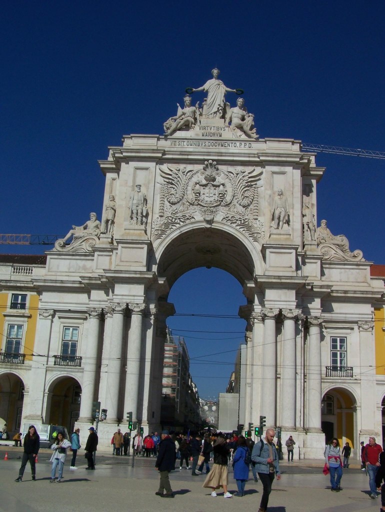 We walk through the Arch and up the Rua Augusta. You can climb up inside the arch for a small few. We see no sense in paying to climb more stairs. We have climbed several thousand already. We see a small church, the Igrezia de Santa Maria Madalena and go inside. There is a prayer service in progress. Though we don’t speak Portuguese, we sit and participate. The Spirit moves in any language and I pray for friends and family facing health challenges back home. The church is ornate, almost gaudy. But the prayers are simple. Upon leaving, I press a small coin into the hand of an old women begging at the doorstep of the church. (There but by the grace of God….)