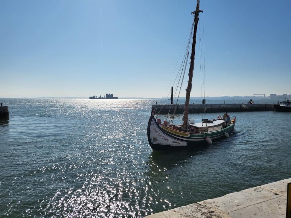 We giggle as the gps reroutes us for the 29th time. We gasp when we see the length of a stairwell only wide enough for one person with no way to pass someone coming up if you are going down. We meet dead ends and have to backtrack several times. A final long staircase and a shooing of pigeons and we reach the waterfront. The road is a bit confusing and it takes a minute to find a crosswalk to clear several lanes of traffic. But the Tagus is in front of us in all its glory.