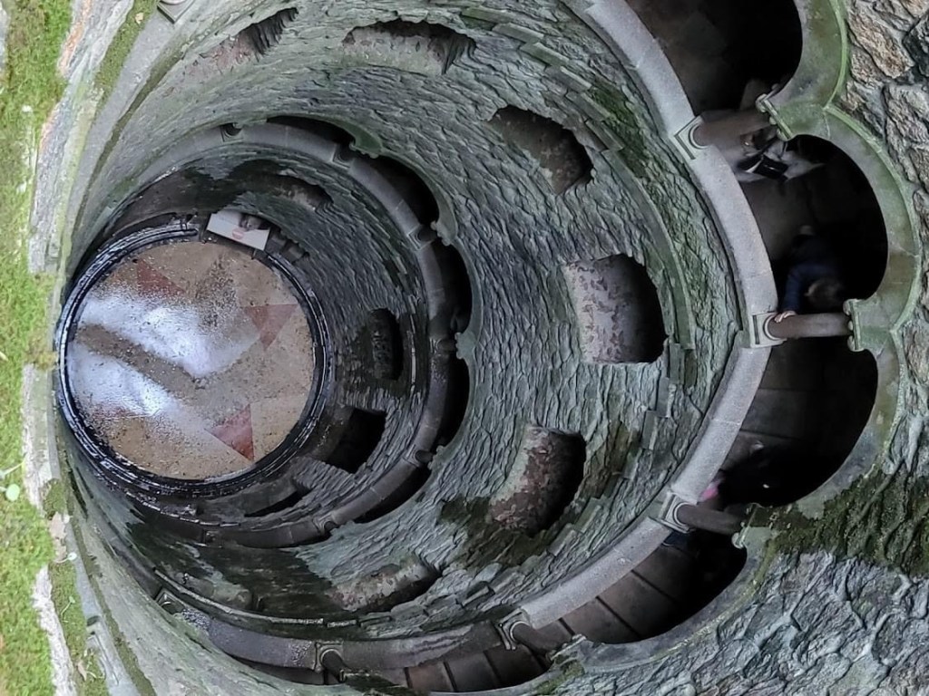 Rejuvenated we decide to visit Quinta da Regaleira also known as the Palace of Monteiro the Millionaire. It doesn’t look too far away. Looks can be deceiving. We trek ever upward. We reach the gates to property but the entrance is up the hill. We round the corner. Upward still. We rest by the side of the road. Upward still. We finally find the ticket booth. Upward still. I want to find the Templar Initiation Well. Upward still.