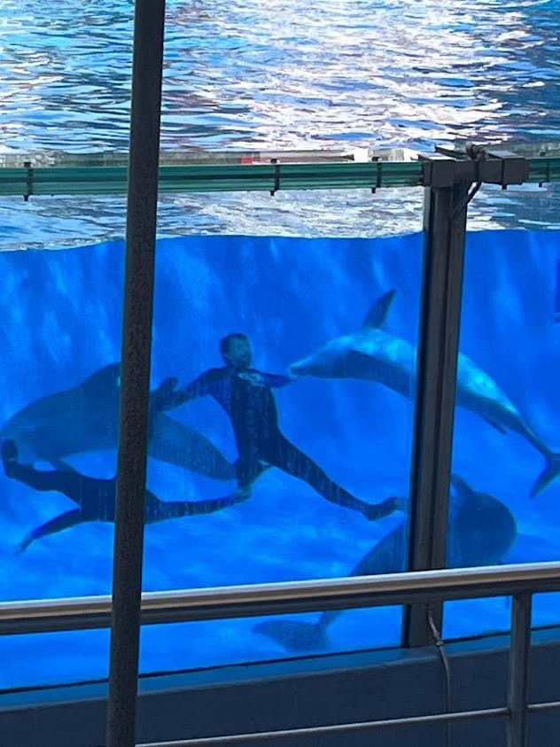 I have never experienced a dolphin show quite like it. There was the usual jumping, spy hopping, clicking and waving. The crowd oohed and awed like a fireworks display was happening. As the music swelled, the keepers swam in an underwater ballet with the porpoises. It was beautiful and magical. And it was weirdly distracting that the head keeper was a doppelgänger for Vladimir Zelenskyy. I am sure Zelenskyy would rather be swimming with dolphins than fending off the rabid Russian bear.