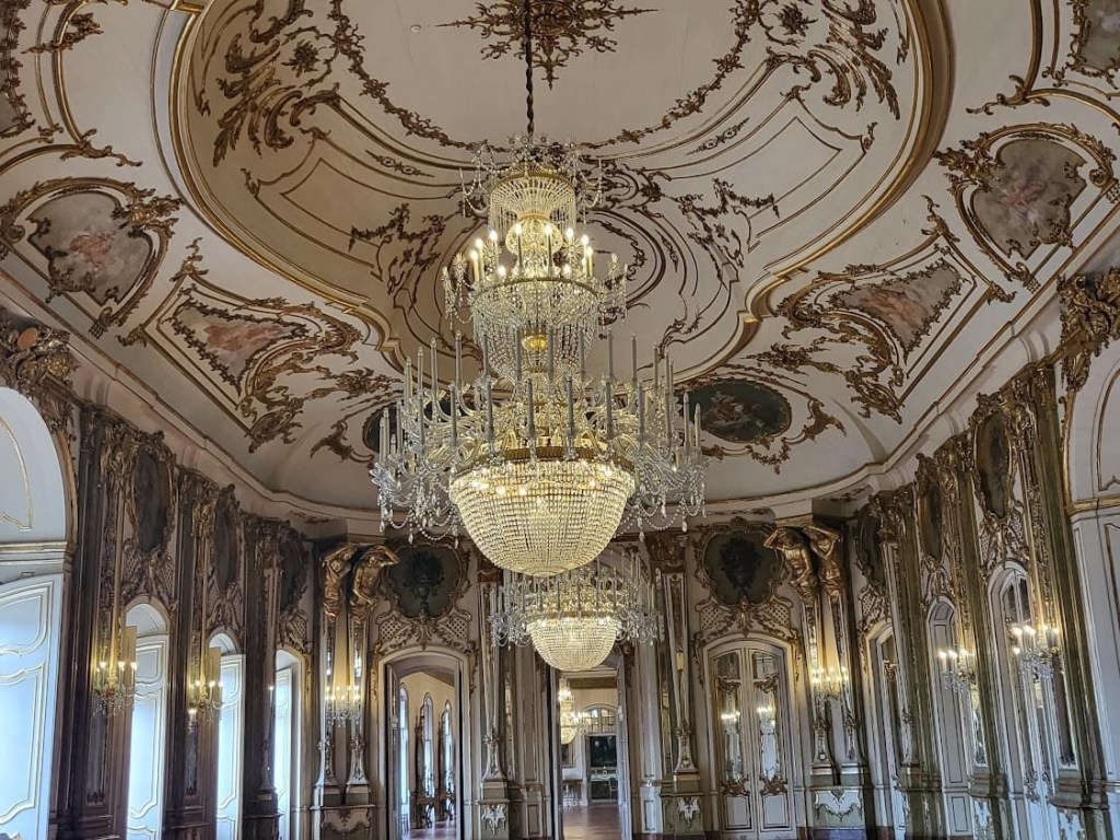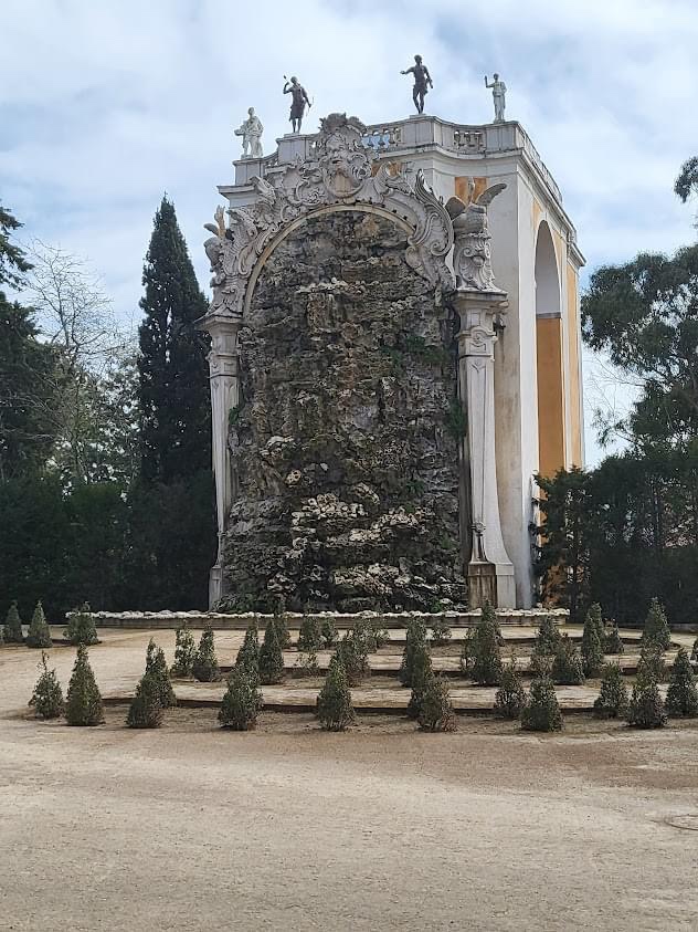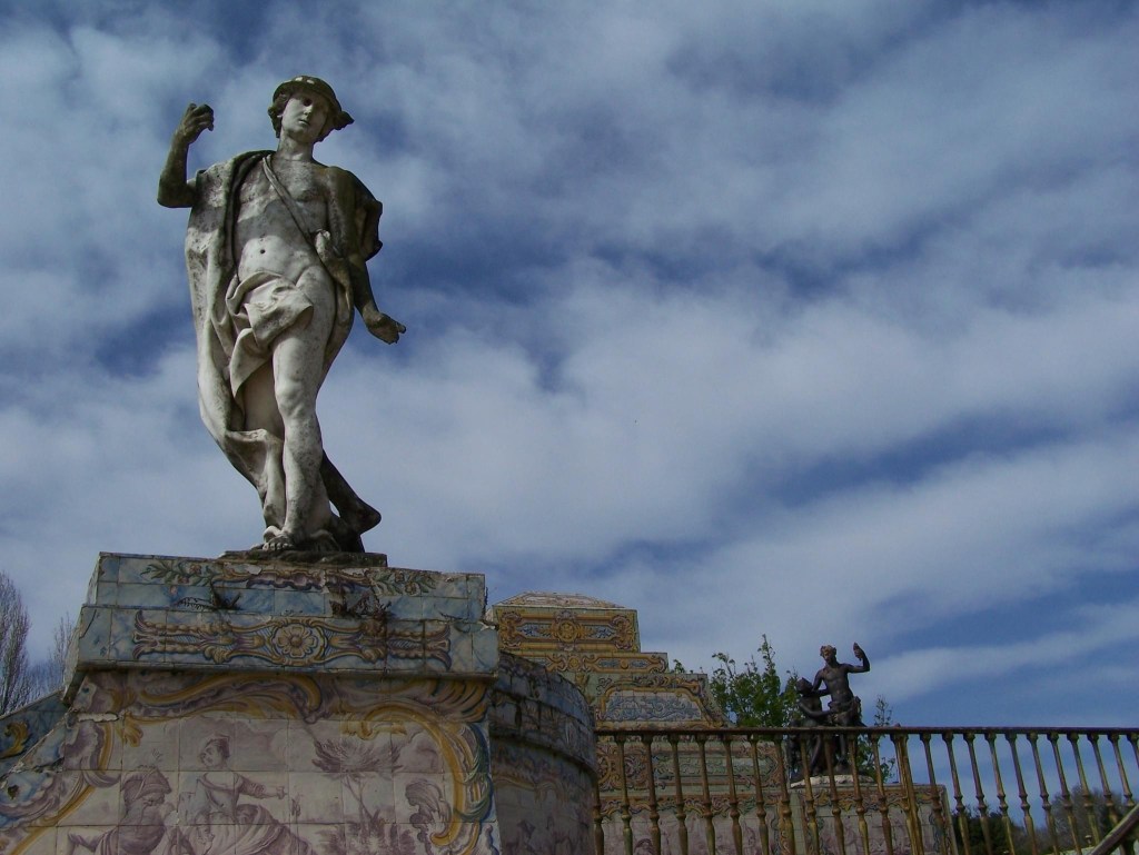 The palace is huge and we are the only people in the place. I think I see one other visitor in a far hallway. There is a hall of mirrors. There is priceless furniture and fine china. As usual, I have a neck ache from staring at the painted ceilings. I am shocked at the majesty and charm of the place. Why have I never heard of Queluz? I imagine myself at a soirée in the music room.