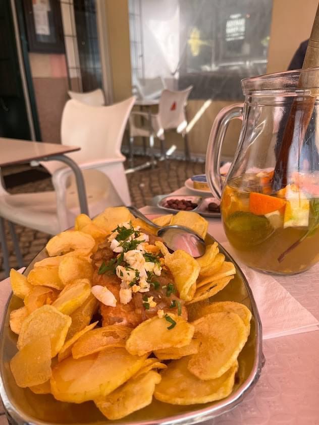 We reluctantly leave. Nearby, a small restaurant is crowded with locals. We take a seat with views of the palace exterior. We happily talk about all that we have seen and experienced. I search the menu and see what I think is listed as “a little girl”. My Portuguese is really bad, so I use google translate. It says little girl. I ask the waitress why a little girl would be on the menu. She looks startled and then giggles. After assuring me that it is fish and not actually a child, she brings us olives and bread.