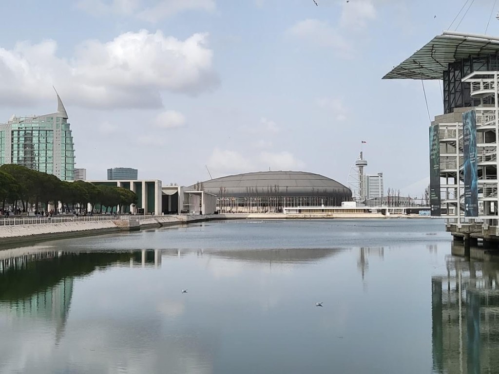 We walked along the banks of the river, but the bridge across the lagoon was closed. We could go no further, so we strolled up stream instead. I wanted to walk to the cable car station at the far end of the park. My husband, reluctant but ever the good sport, agreed. After purchasing two tickets and a taking few steps into a moving aerial tram, we were air born. Just like little kids, we pressed our faces to glass to look down to river and the park below. We took photos of the unique buildings in and around the park. Ahead in the distance, we could see the Oceanario, our target destination. I felt excited. I was going to get up close and personal with sea life.