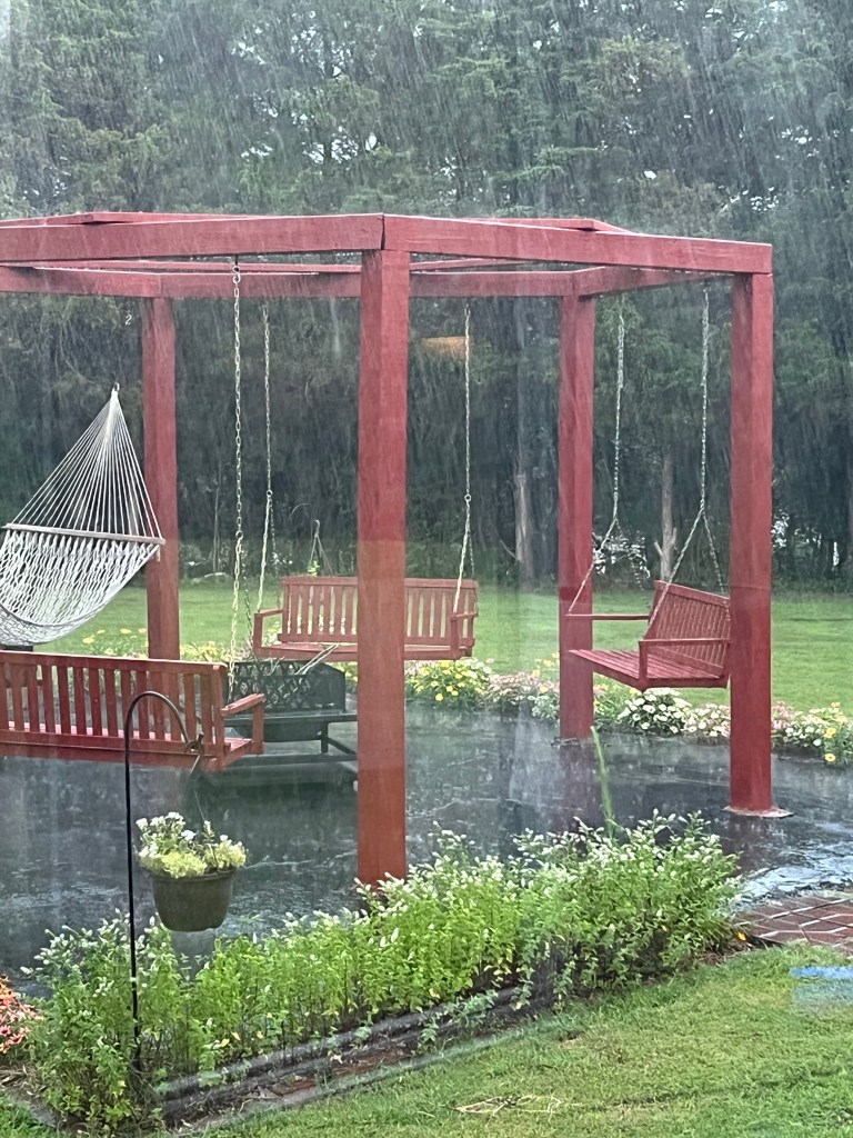 I have a love/hate relationship with my yard. It is spacious with wonderful trees. I have small garden spaces and patios. I even have a large freestanding octagonal swing structure surrounding a fire pit. We also have delightful wildlife that, four months out of the year, turn into creatures of mass destruction.