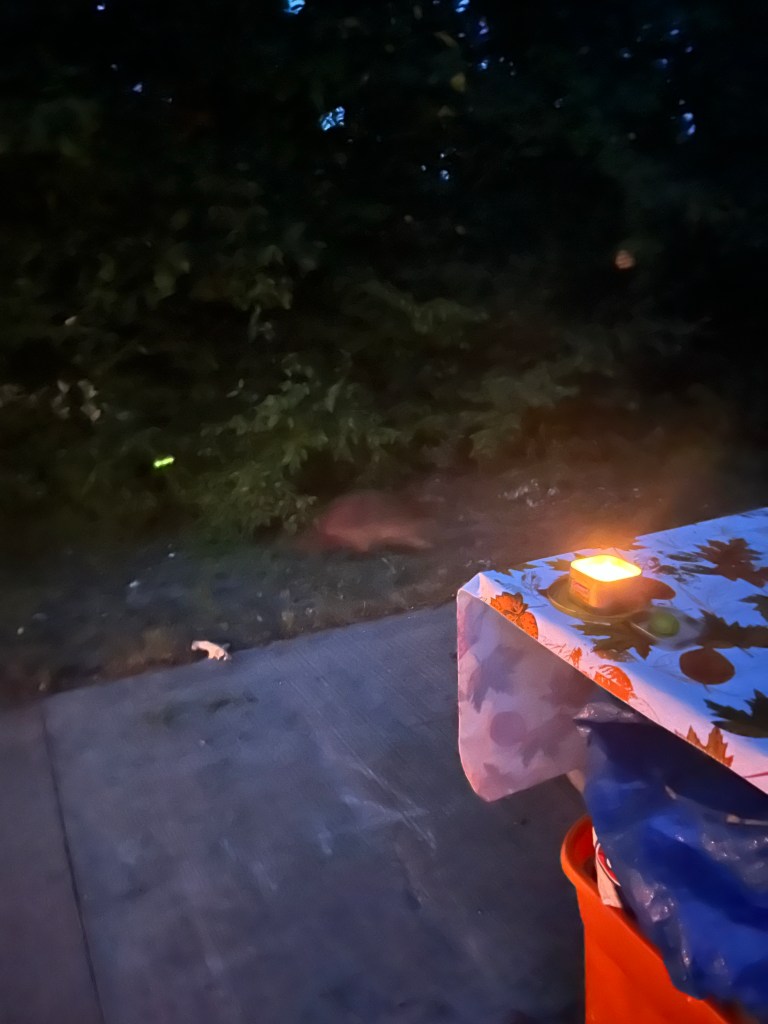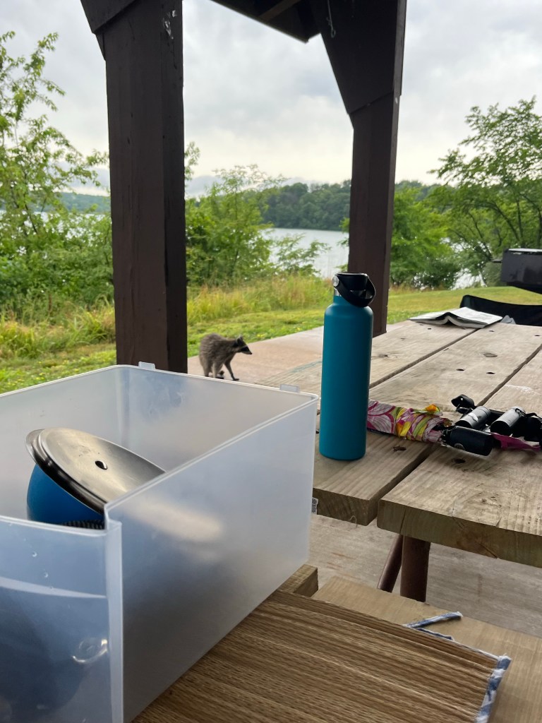 Raccoons are crafty creatures, but as experienced campers, we made sure the food was tightly sealed and secured in our cars. We removed the trash to a provided and secure bin away from the camp. We carefully stacked our outdoor gear under the table and covered it with a tarp.