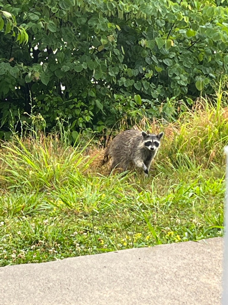 Back in Ohio, we had several similar encounters with racoons. One got the lid off of a can of Crisco and ate nearly half of the can. 🙂