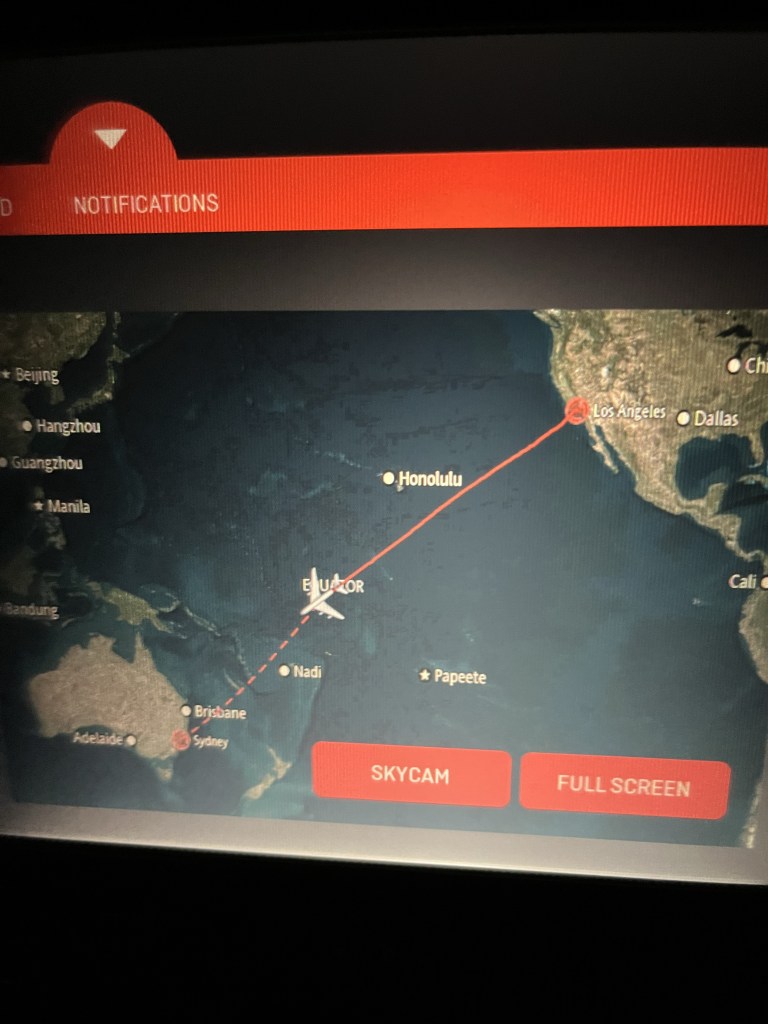 Once on board, the flight crew was excellent. We had an uneventful and comfortable flight to Los Angeles. On ward to Sydney, we were even given aisle seats with no one seated beside us. Extra room and good food, what could be better? Quantas did a great job providing a pleasant flight experience.