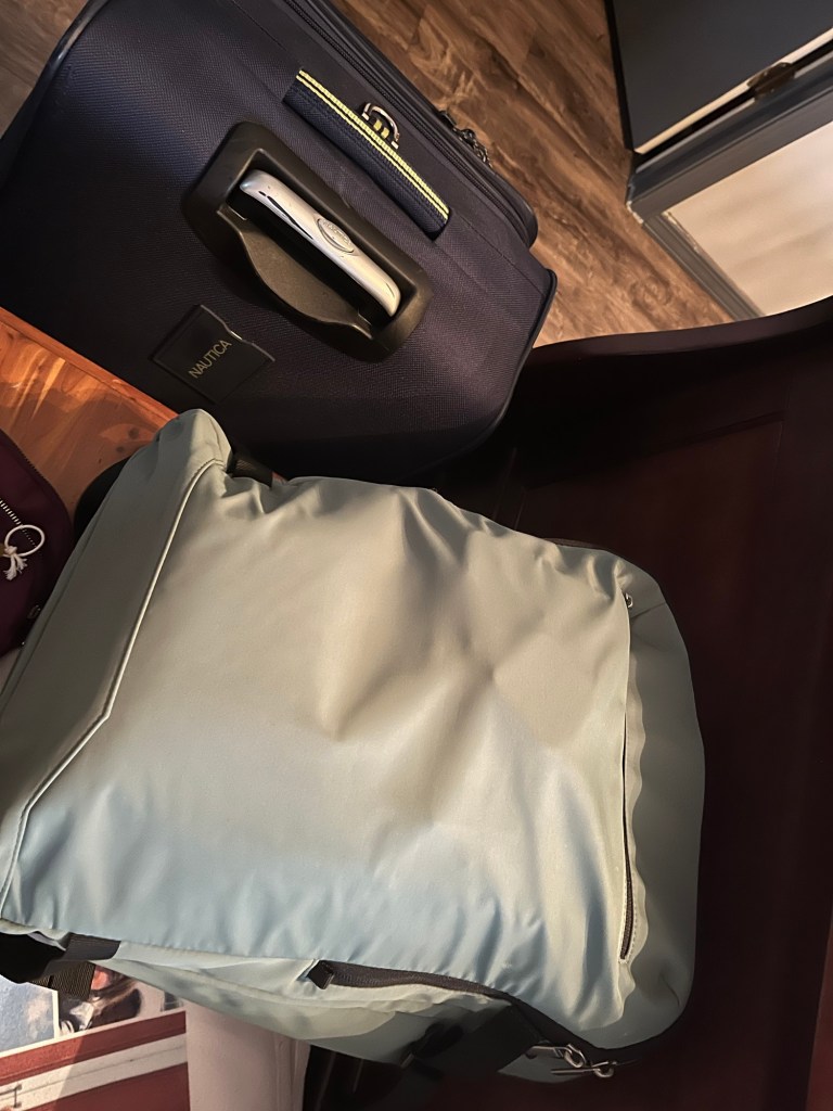 The remainder of space is taken by a hair brush, and very small clear bag to hold essentials like toothpaste and mascara. Make up is minimal to nonexistent when I am on the go. And finally, the electronics which may include a camera, laptop, kindle, and phone (and all the cords).
