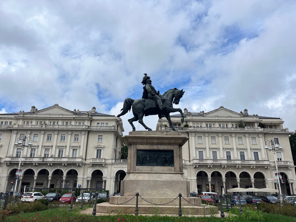 We started out with no expectations for the day. We were visiting the Italian city of Novara for no other reason that our wonderful neighbors’ family is from the area. We wanted to explore and send pictures to honor our friends. The town had about 100,000 people and we approached through farm country. Gorgonzola cheese and milk factories lined the highway.