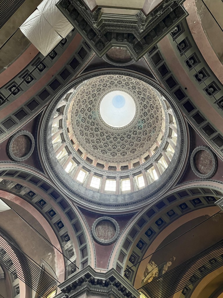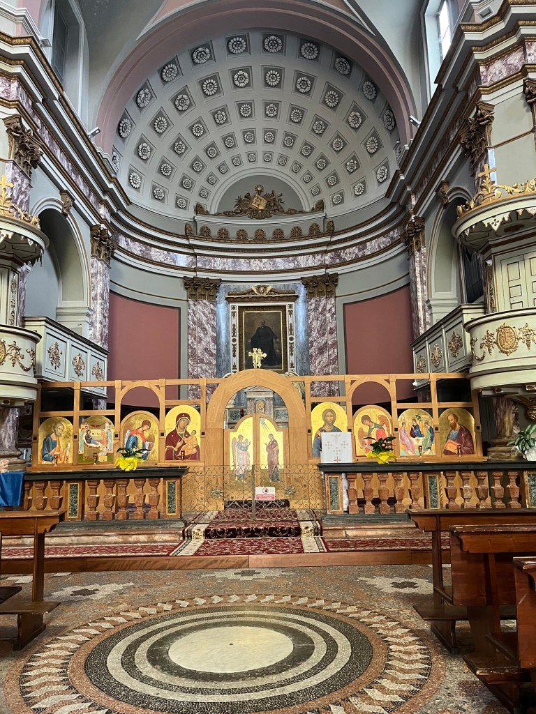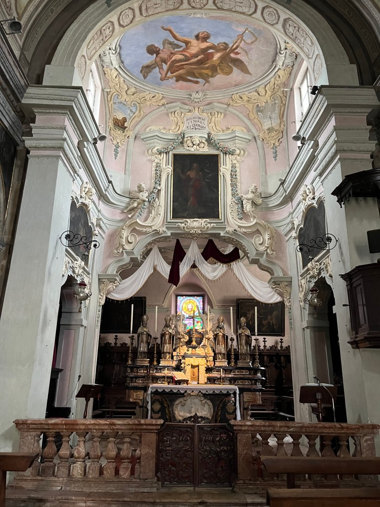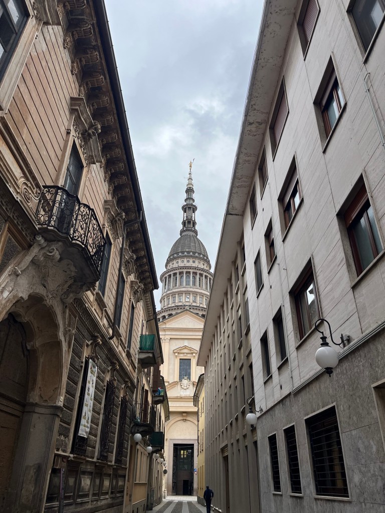 Basilica San Gaudenzio was a surprise. Although we could easily see it across the city, it remained hidden by the narrow streets until we were at its doorstep. The spire shot upwards toward the heavens. Delicate and beautiful on the outside, on the inside, the cupola seemed to open into heaven itself.
