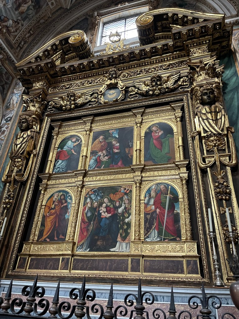 An organist was practicing and the pipes rang loud and true. A call to worship as I studied medieval art on walls, ceilings, altarpieces, screens…. I was overwhelmed.