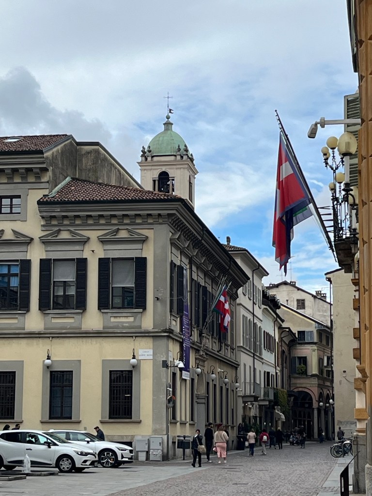 We strolled up and down the Corso Cavour, an ancient trade route running across Italy to the Alps. Napoleon took this road as a guest and then as a conqueror. In this day it was full of ordinary people going about their business. When it was time for a mid day meal and we half heartedly began pursuing a restaurant. Mostly, I just liked the excuse of looking into hidden palazzos. There could be a restaurant there….right?