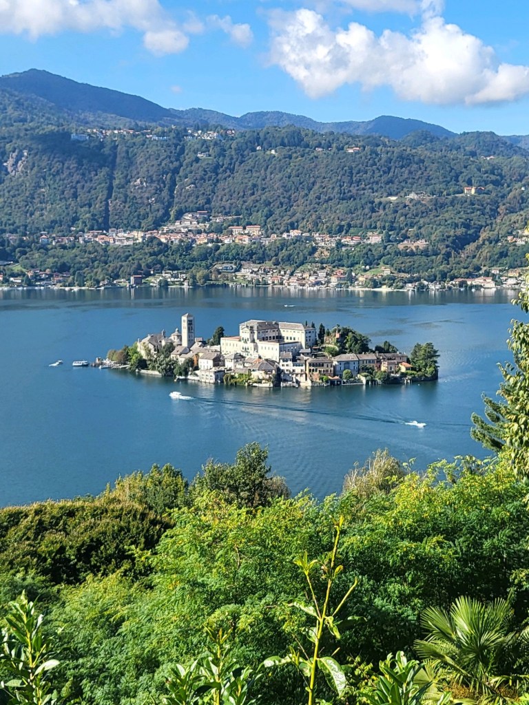The views from the plaza in front of the church were truly breathtaking. Isola San Giulio sparkled like a jewel in the middle of Lake Orta. We took a few selfies, but my husband has had enough and went to find a bench.