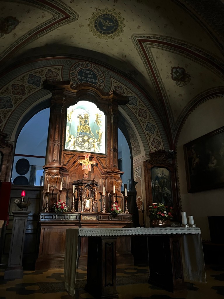 In between the chapels, I had glorious mountain views of beautiful lake Orta. Children’s voices were carrying on the breeze as they played tag in the park. Grandmothers now ate gelato (Where did that come from? They couldn’t have that in their purse?) and shared more stories. A cool breeze gently twisted the turning leaves.