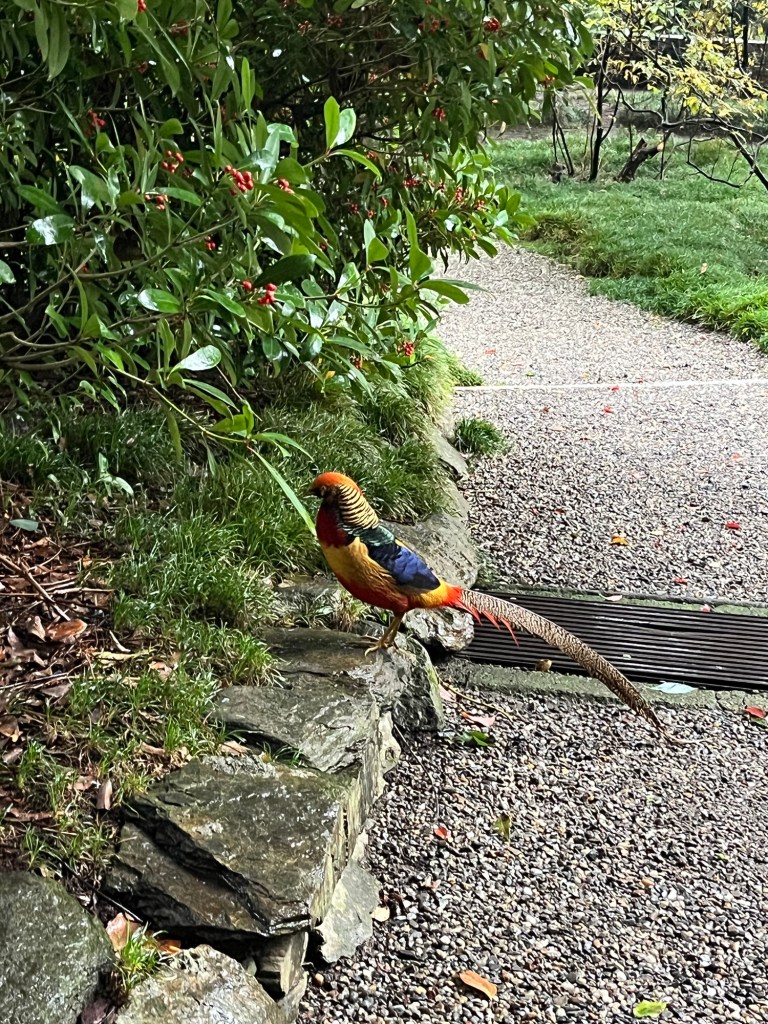 Isola Madre was beautiful, even in the rain. Old trees. Lush shrubbery. And lots of wonderful pheasants. The birds were everywhere and didn’t mind the rain. The ran out of bushes across the paths. They danced and preened and clucked and scratched and scurried. I enjoyed watching their play.