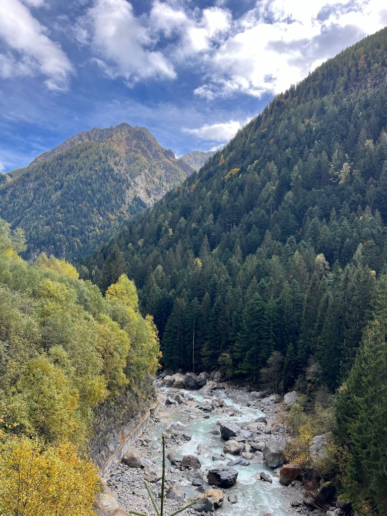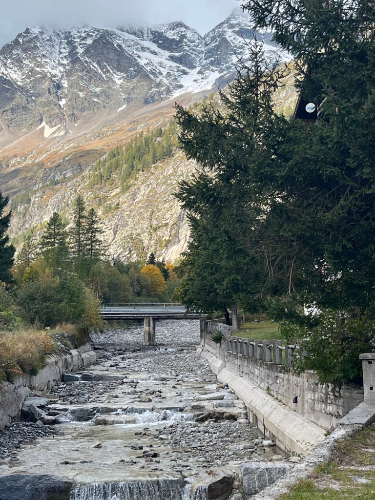 It is hard to know where to look. There are canals built to channel snow melt that are full of rippling water. Each view of the town yields a different magnificent landscape. Look one way and all you can see is snowy Alpine mountains. Look another way and you see rushing waterfalls. Another takes in the colorful autumn trees amidst pine covered mountains. Or perhaps to my delight, you see the creamy Swiss cows complete with jingling bells grazing in a nearby meadow.