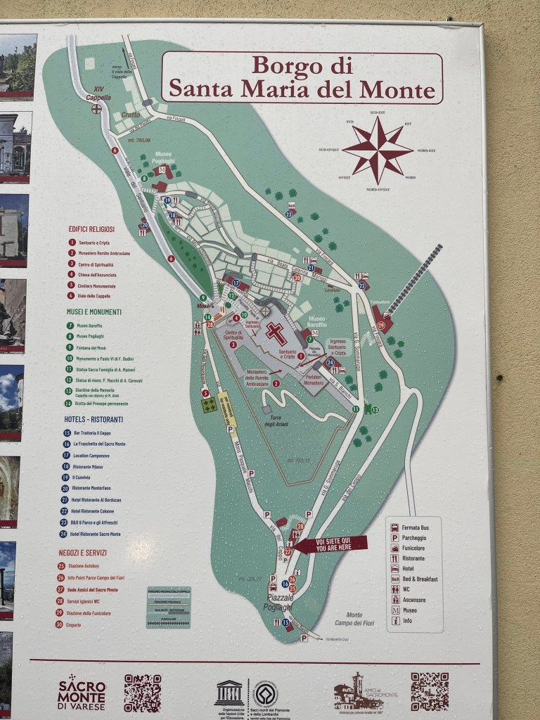 We emerge from the crypt to a new world. The fog has lifted. The sun is shining. Four lakes, including Varese and Maggiore are visible. Suddenly the Sacred Mountain makes a little more sense. It is an unusual place, built into the mountain. With a vague understanding of where we are in relation to our car, we walk toward our parking space. Or at least where we think we parked.