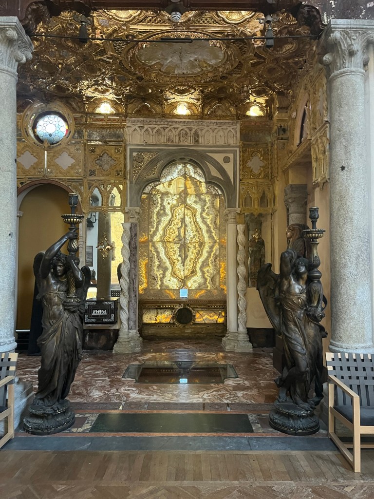 The small museum was built by the artist hired to do renovations on the monastery. It is a villa, full of the owner’s collections of ancient artifacts…marble from the Shaw of Iran, renaissance art., Grecian urns, Ming vases, Roman statues. The pieces are eclectic and weirdly wonderful. My favorite museum piece is the gypsum mold for the bronze doors of a Roman church. The artist carved the mold, covered it with wax and then poured the bronze on top. The wax melted and the bronze separated and voila! I saw the doors in Rome long ago, but find that I am much more interested in the mold.