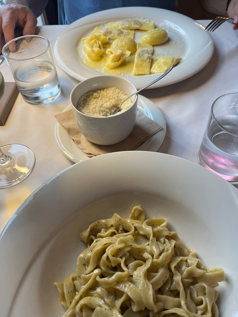 We have the place to ourselves. They seat us at a lovely table in front of a window, better to view the fog I guess. The tagliatelle with truffle butter rocks my world. Instant mood adjustment!