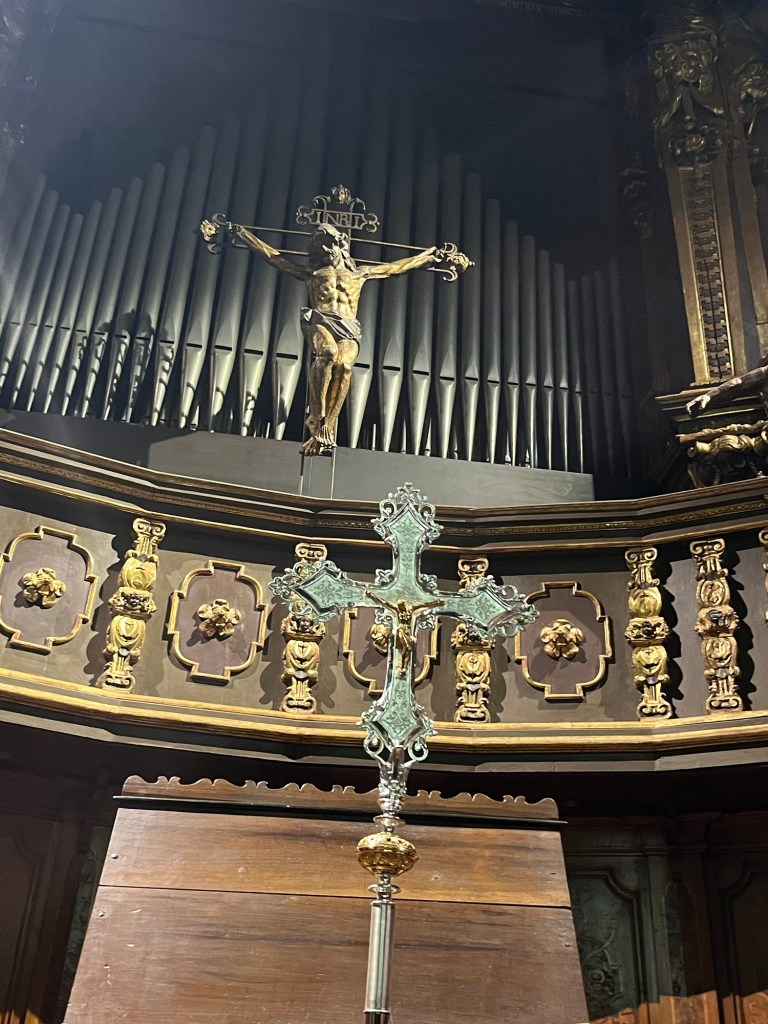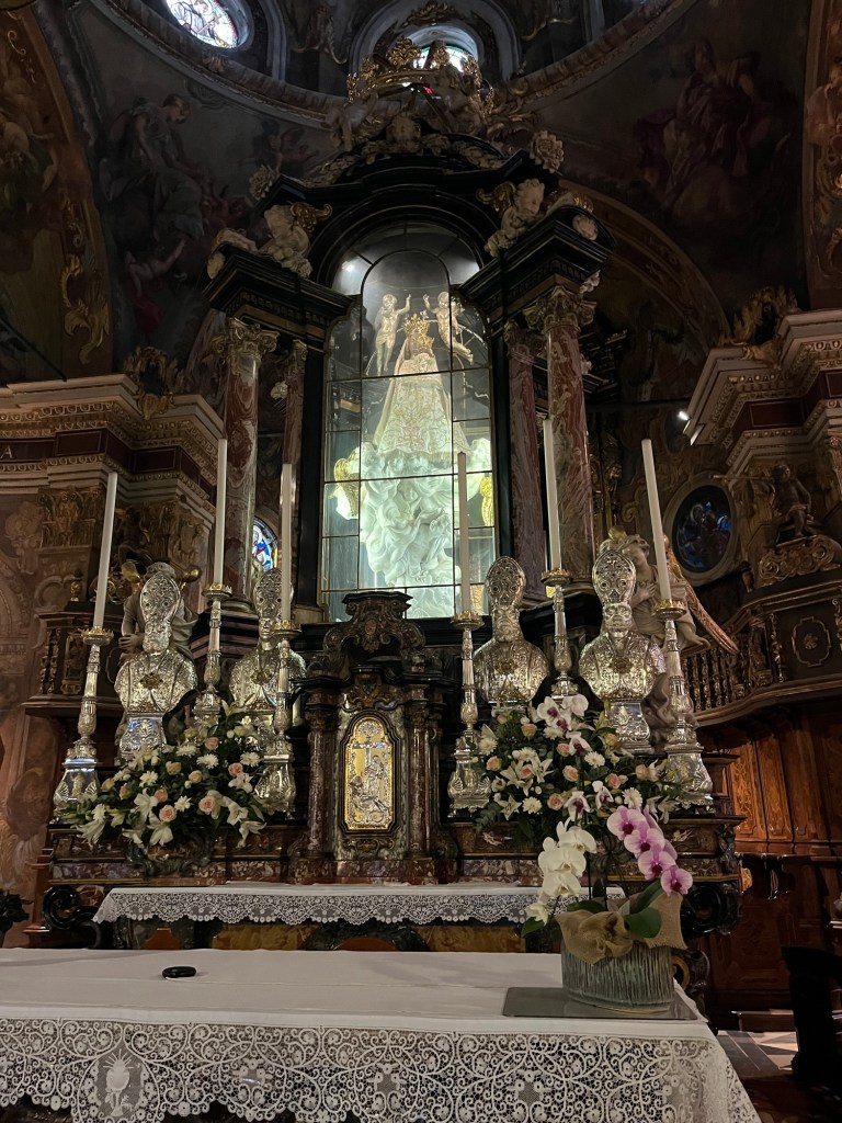 Nourished, we head out to conquer the sacred mountain. The church is part of an ancient convent formed by Catherine and Juliana in the 1400’s. The small, Saints Chapel is dedicated to their remains. While Jesus is honored in the church with a small sculpture hidden in front of the pipes of the organ, the real feature of the church is Mary.