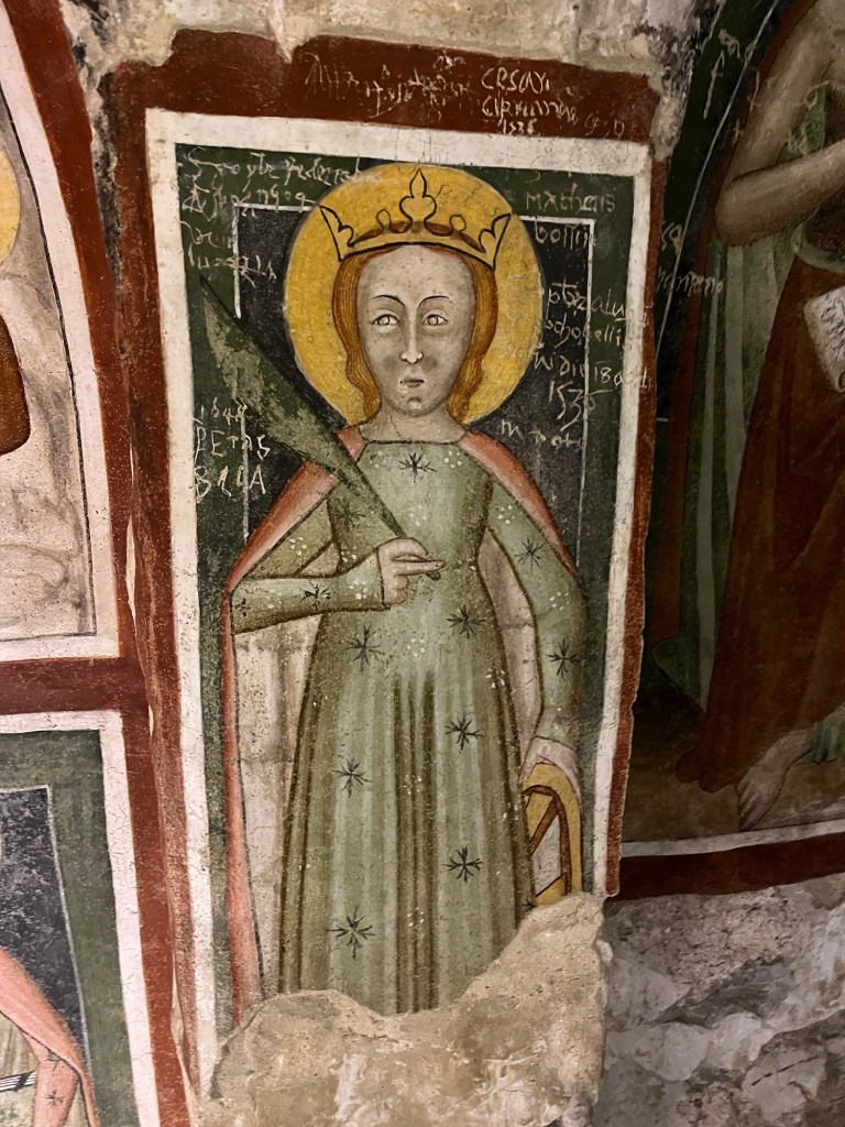But the museum’s real treasure lies in the crypt under the church. The original frescoes from the 11th century are still perfectly intact. At least seven priests are buried here. Glass walkways reveal the graves and further back in the crypt, the remains of the 4th century church. Graffiti in Latin covers some of the fresco. You can clearly read, “I, (name of person) was here. 1535”. Almost 500 years in the past, people couldn’t resist the urge to leave their mark.