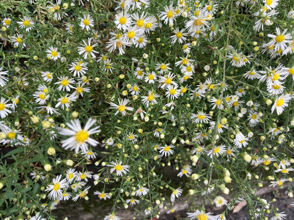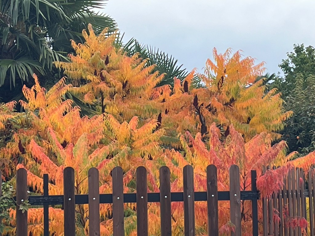 I enjoy the explosion of color and the morning sun on the way back to the house. It is strange to see plants that I associate with Spring in full bloom in late October.