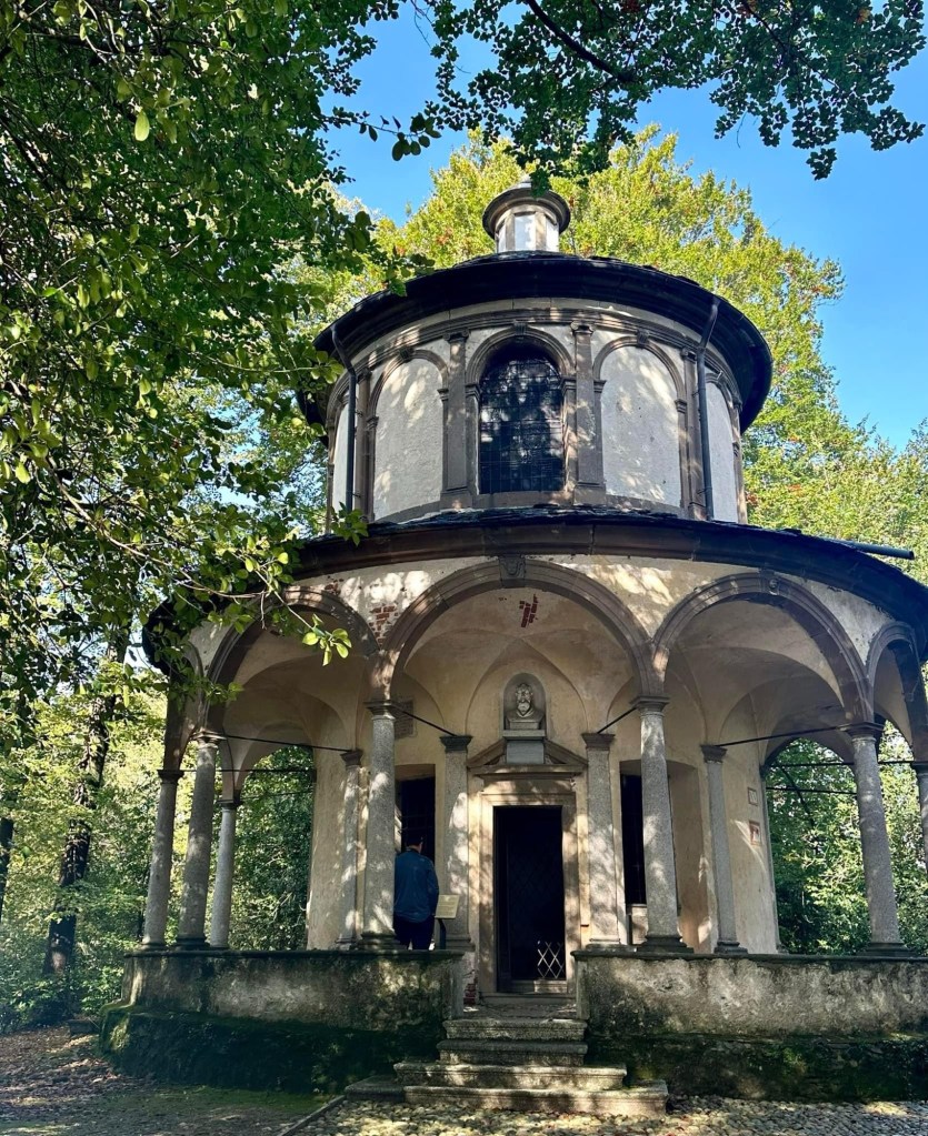 First we trekked up the mountain to visit the sacred Mount of Orta, where a series of small chapels tell the story of Saint Francis of Assisi. My sister in law was captivated by the cemetery and so we took a detour. We visited graves of people who endured years of hardship through two world wars and a fascist regime. My husband decided to find a seat in the shade while we climbed the mountain. It took us awhile, but the rest of eventually made it up the steep incline to begin our pilgrimage.