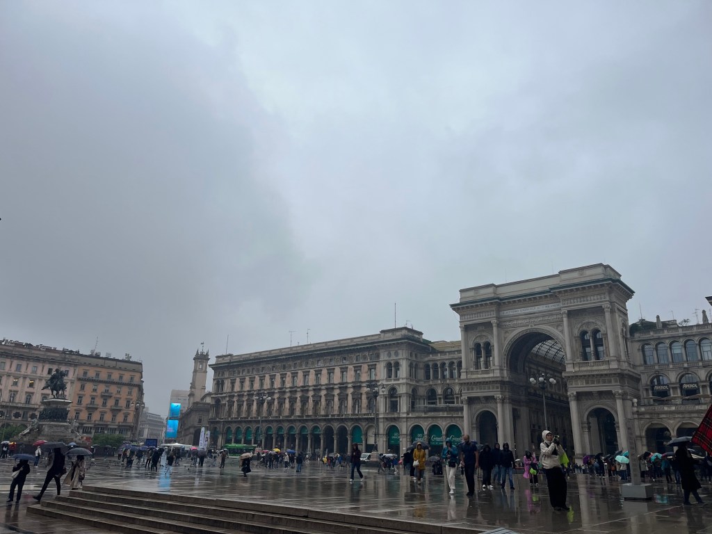 We briefly walked through Vittorio Emmanuel. Like always, thousands of tourists were vying for the perfect glamour shot. She told us Armani had designed a space suit and that fashion was going to space. She said she heard each suit would “cost 3 billion dollars” but hoped it wasn’t true.