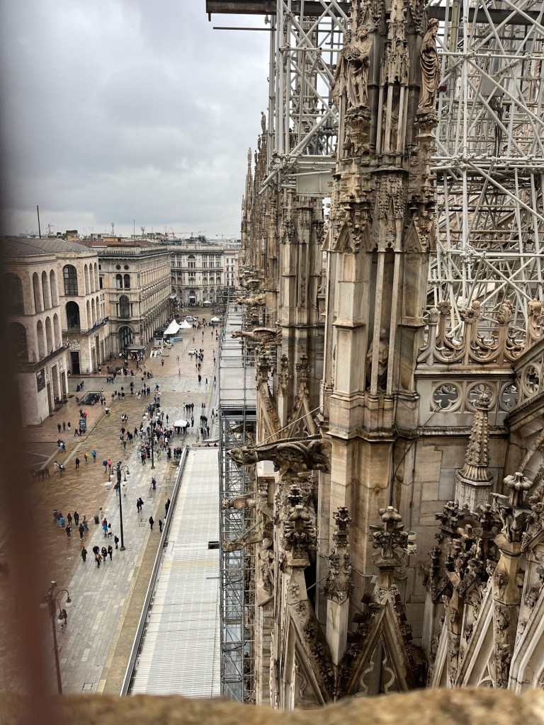 A local friend of my brother had recommended the 12 Gato 🐈⬛ (cats) restaurant to us. It was up a secret staircase in the Vittorio Emmanuel building and on the rooftop. A hidden oasis in a sea of crazy, the cozy restaurant was perfect. We lunched on great pizza far away from the crowds. While we were there I snuck out on the highline catwalk. I guess I hadn’t spent enough time on roof walks yet. Actually, I was hoping for a view of the 12 cats that lived on the roof. No luck….but I can say I walked on the rooftop of the Vittorio Emmanuel. I didn’t even know that was possible, and unlike the experience at the Duomo, I the only one on the roof.