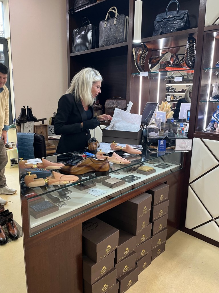 As we made our way across town to the Convent San Mauricio, I saw a shoe store my brother has talked about for years. He has said every time he has visited Milan that he wanted a pair of “Harris” shoes, but he never buys them . Today with his wife, his sister, and his sister in law in attendance, he didn’t stand a chance. We made him try on shoes. We gave our opinions. We cajoled as he tried to talk himself out of the expense. And he finally got a pair of hand made, hand painted, Italian leather shoes from Milan. Bellissimo!
