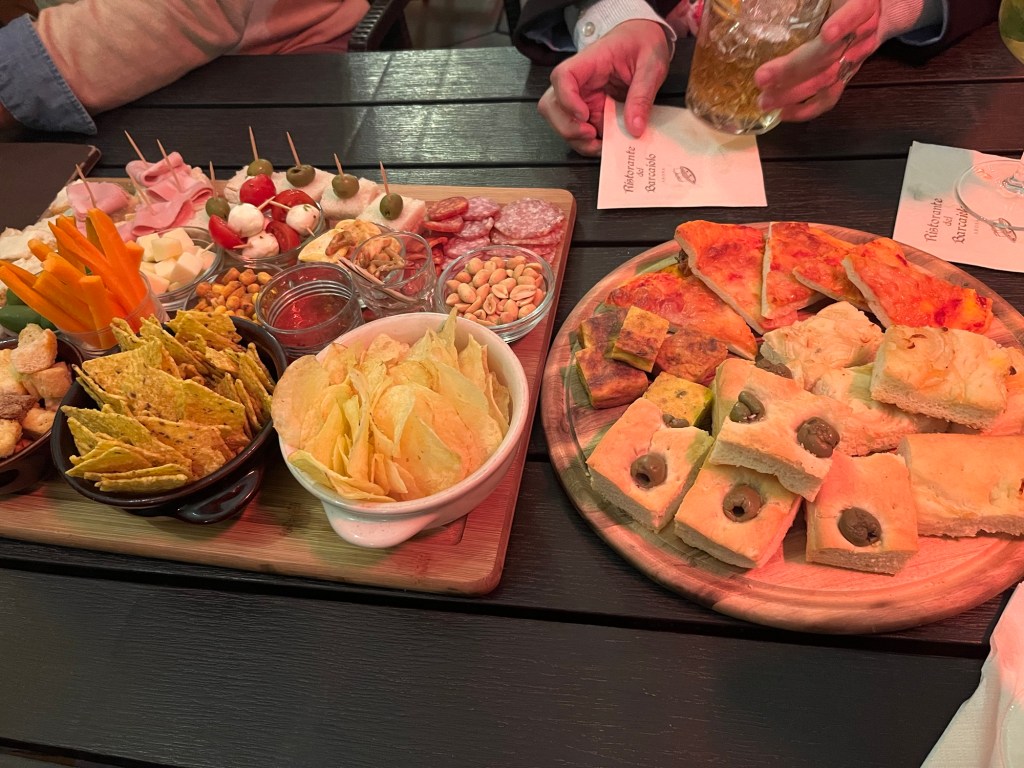 Despite the ribbing, made our train with time to spare. My companions dozed off and on during the one hour trip back to Arona. Once we collected our car, we introduced the group to the Italian Appertivi. You buy a drink and for a small fee you get appetizers (sometimes they are free/in today’s case $2.00 euro). Our table was covered in food. We sipped and ate and laughed. Turns out we can have a whole lot of fun unsupervised.