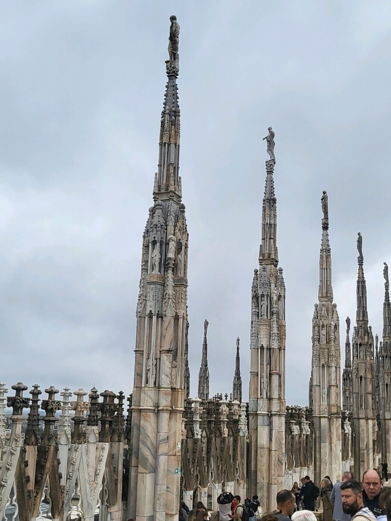Our first order of business was to buy tickets to climb onto the roof of the duomo. Three of us had already experienced the roof walk years ago, but my husband and sister in law had not. It was fascinating climbing among the gargoyles far above the city and we wanted to share the experience.
