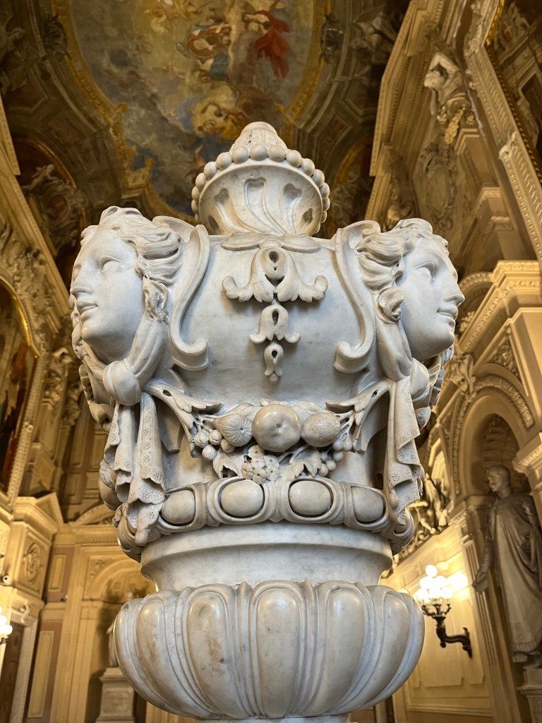 There were more things to see, so we collected our things and left the palace. We walked across the soggy plaza to the Madama Palace. The ticket taker was rude. I bought tickets. My brother did the same. My sister in law went last and got confused as to which ticket to buy. I returned to see if I could help. I held up my ticket and asked if it got us in all the rooms. The ticket taker slammed down her hand, rolled her eyes and moaned “I already sold to you.” I assertively asked for one more ticket and she loudly groaned. Ahh Torino.