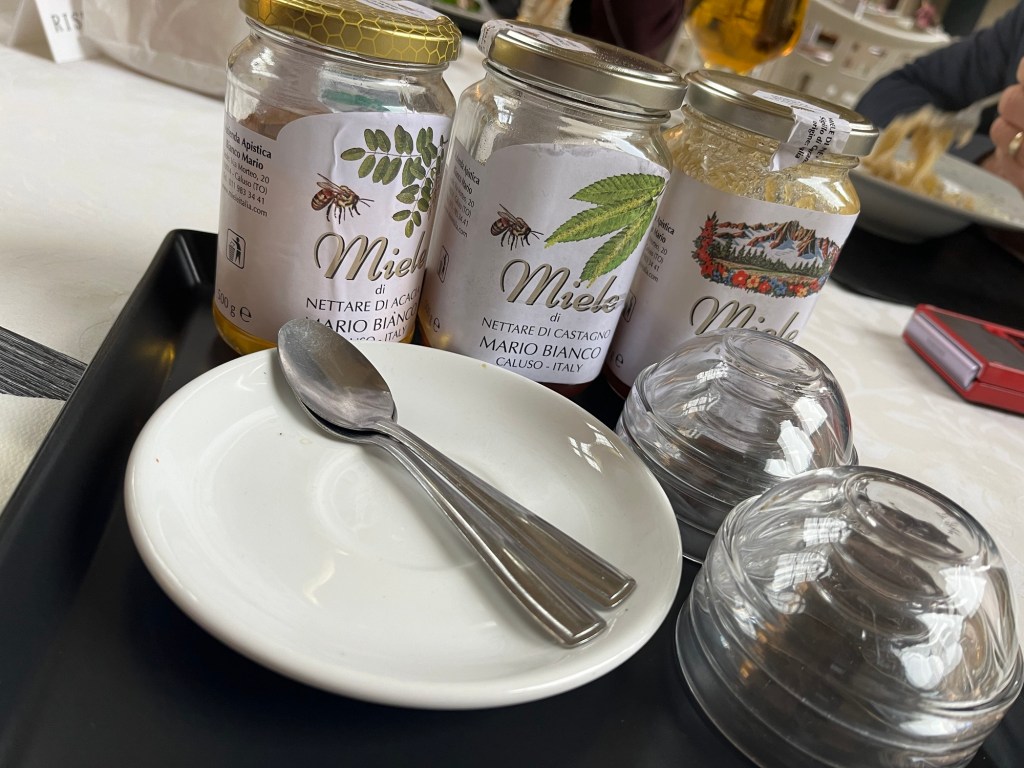 I was freezing, so the coffee seemed like a great idea to wash down my lunch of local cheese and honey. I was still a little unhappy about eating outside on a cold rainy day. I was the grumpy one throughout lunch thinking of other times we have travelled and I miss my restaurant of choice because there is nothing my husband will eat or it is too crowded or too expensive. I had to check myself and instead enjoy good food and good company between my shivers.
