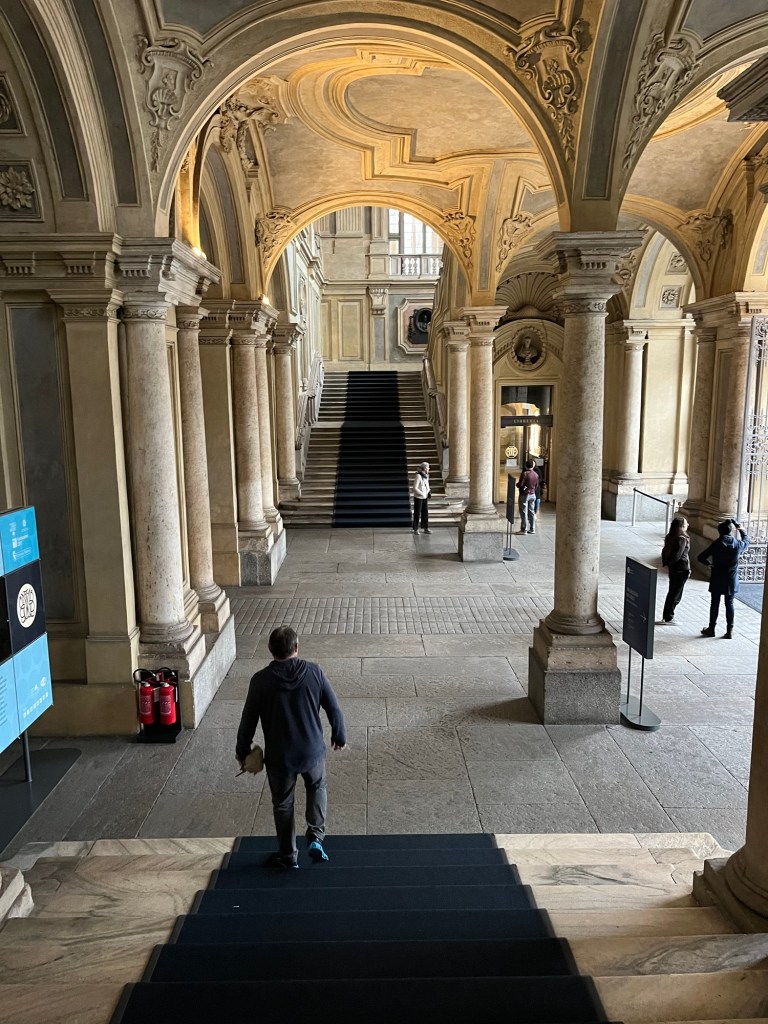 The Madama palace has been turned into eclectic museum space. Most of the museum was full of ancient treasure, but there were weird and out of place exhibits within some galleries. Rooms with gilded ceilings held exhibitions on: the finance police, the sea, science, random topics, and modern art. I was looking at a medieval painting in a period room and turned and turned to a neon science center style exhibit under an elaborate fresco ceiling. There was no warning for the abrupt change in venue.