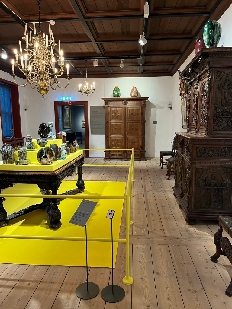 Just down the street, we finally enter the Kode museum complex. It turns out to be a small museum of Norwegian artists. They have temporarily placed misshapen clay pottery in every single gallery. I don’t like it. I’m sure the artist is a delightful human, but not my thing. They don’t fit in the rooms and seem very disruptive to the exhibits.