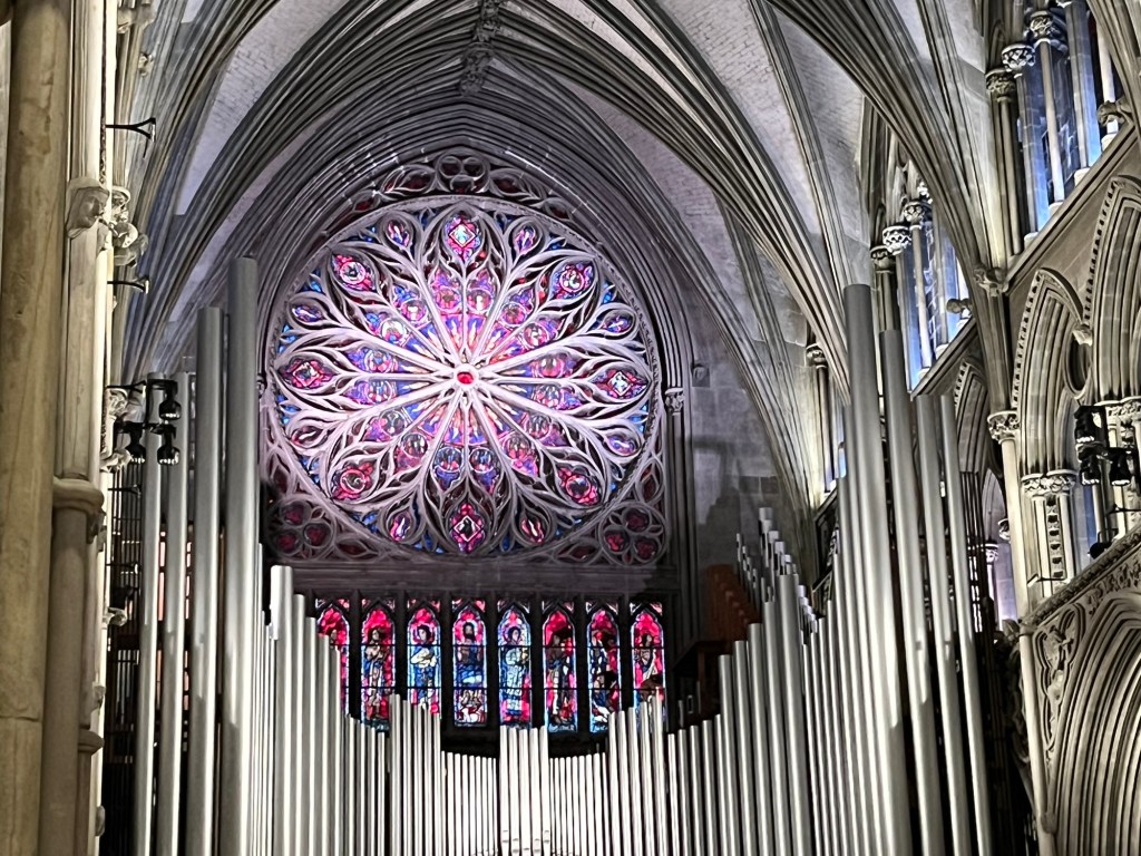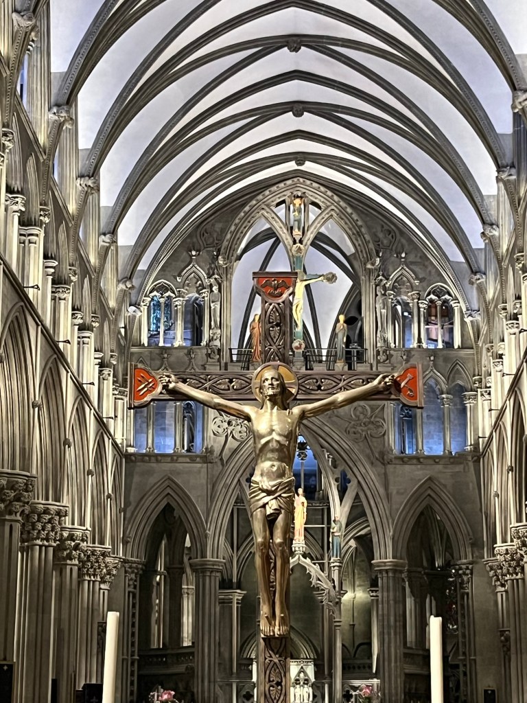 It is a large and impressive structure, laid out in the familiar pattern of the cross. The flying buttresses, support the massive stone roof. Each area holds side chapels and stained glass masterpieces. It, like all great cathedrals, is awe inspiring. I pause to light a candle and give thanks for the health and recovery of our parents. I pray for peace and goodwill for humanity. I pray for our divided nation.