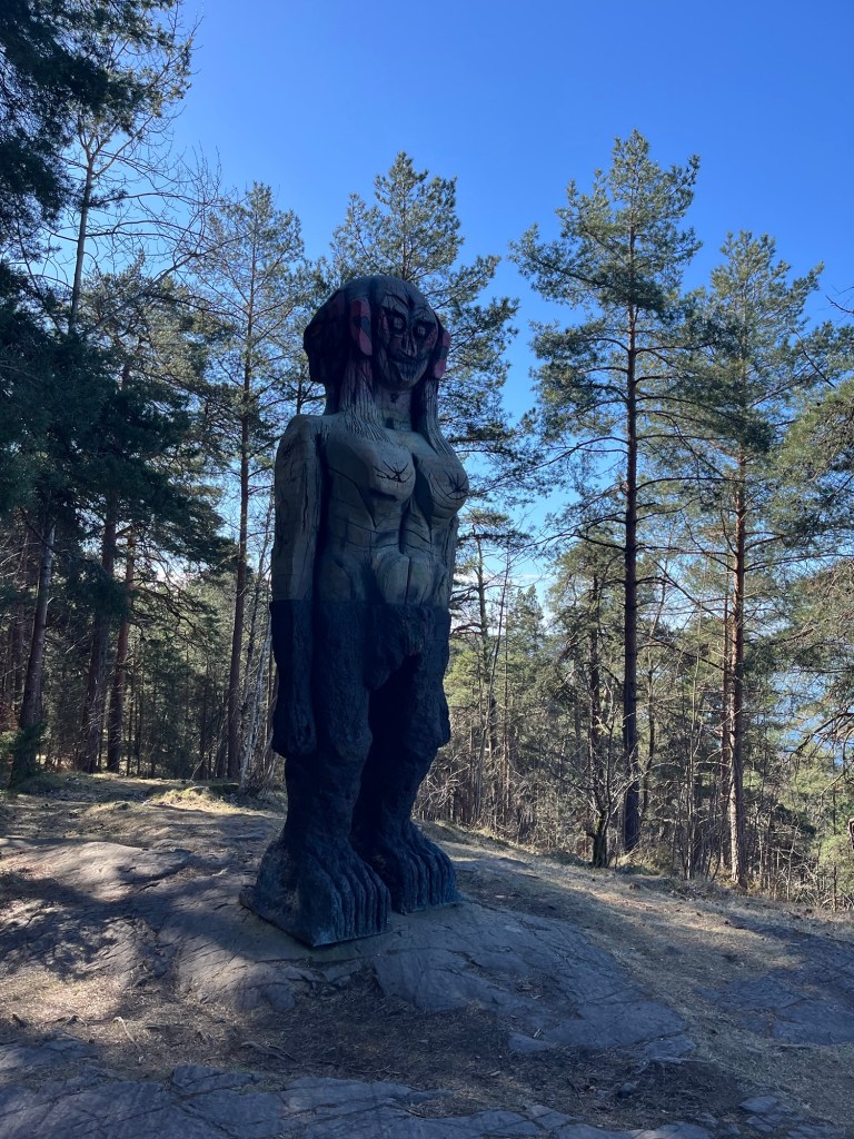 I love the great outdoors. Find me a forest and l am one happy girl. So when I read that Eckenberg Park has sculptures in a forest, I am intrigued. It is a beautiful sunny day in Oslo and it is unusually warm for the season ……so it seems like a great way to spend the day.