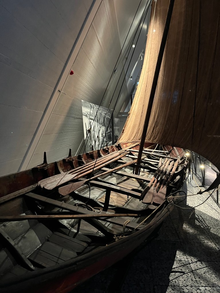 In a smaller annex across the street, we get up close and personal with the small fishing boats that were used for centuries by families along the Norwegian coastline. The boats are shallow and cramped. I think they would be alarming to sail on a clear day and unimaginable in a storm. No wonder so many were lost at sea. The boats have been used across centuries. Clearly I am no mariner.