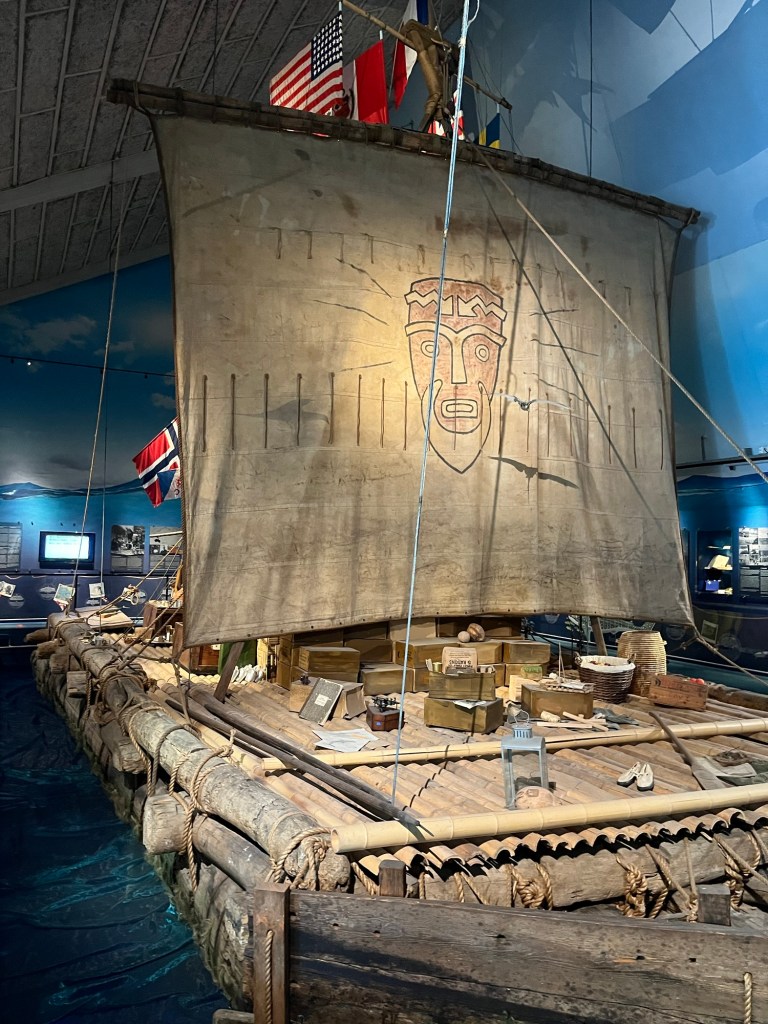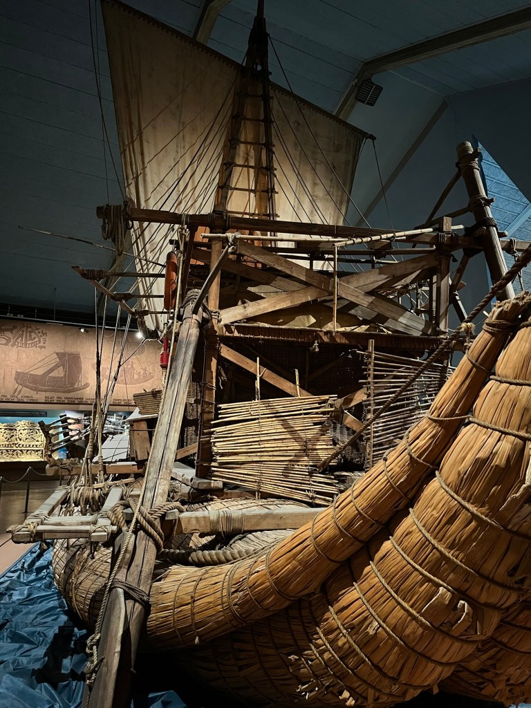 We leave the arctic explorers behind and head across the street to the Kon Tiki museum for a different kind of crazy. This small museum houses the Kon Tiki raft that Thor Heyerdahl and crew floated across the Pacific Ocean from Peru to Tahiti, just to prove it is possible. 101 days on a raft. . In the ocean… To show that maybe Tahitians came from South America.