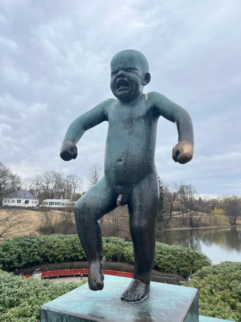 Last days in a place are always a little bitter sweet. I spend a little time either trying to figure out if there are places we need to see before we go or places we need to revisit. Today feels random. I want to return to Frogner park to get a picture of the “angry baby”. Somehow when we were there before, I forgot to get a picture. Perhaps I was overwhelmed by the hundreds of statues surrounding it.