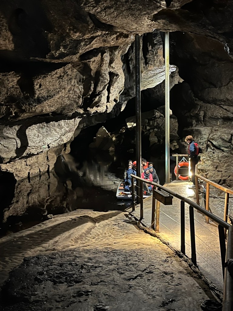 As I am lamenting our bad fortune, I see a newsfeed from a Fermanagh newspaper (I subscribe to wherever we have “lived” on an extended stay just to stay connected.) I click in the video that shows people being evacuated from the cave. Water is pouring in. Guests are being escorted up stairways with torrential flow coming down. Water is above ankle deep in the cave and rapidly rising. Even the staging room is flooding. I can’t believe it is the same place. I am looking at a photo of the cave interior and watching a corresponding video of a cave rapidly filling with water.