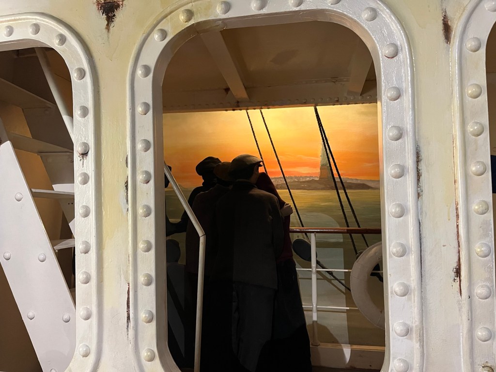 The park does a great job of grounding the immigrant’s experience. I first visit period Irish farms, cabins, churches and town. There is even soda bread fresh from the coals. (Pro tip: Never turn down freshly baked soda bread.) Donkeys beg for attention. Flax fields wave in the breeze. I think I would be content in this older way of life. Possibly hungry, but industrious, grounded and content.