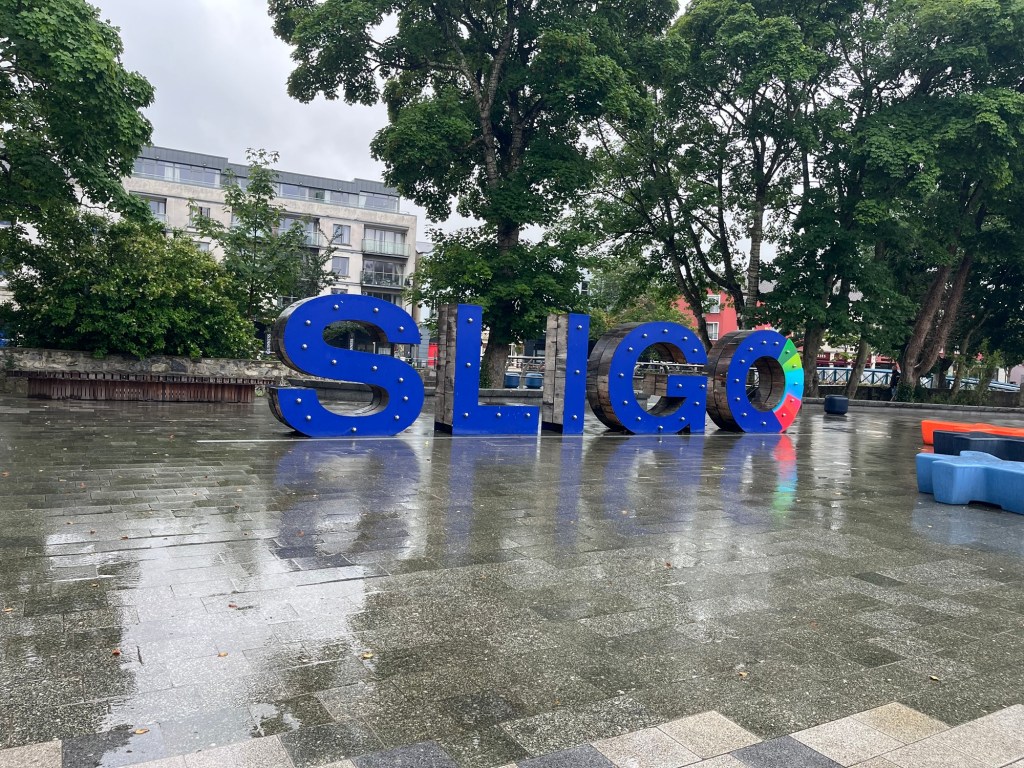 Sometimes in Ireland the rain sets in. There is nothing to be done except to find an umbrella and sing. We find ourselves in Sligo on such a day. Using our trusty Google Maps, we find a large parking lot near the town center. So we arrive at Sligo Abbey only half drenched.