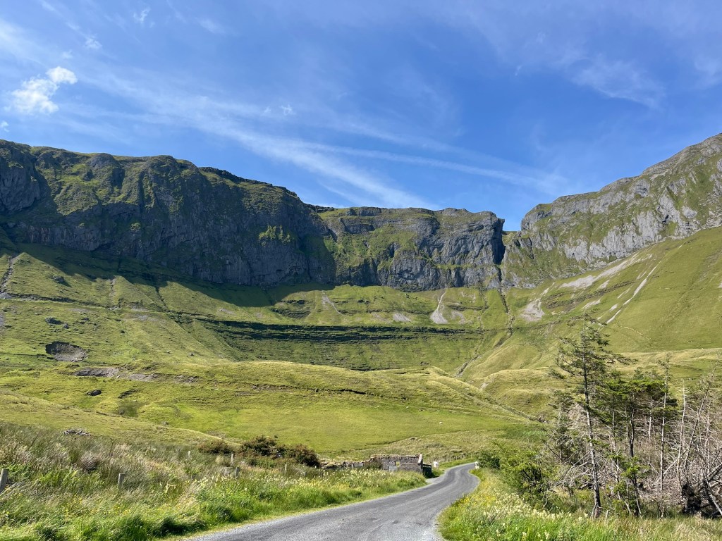 Just down the road is Gleniff Horseshoe. A one lane loop road runs through country surely shaped by God’s hands as a masterpiece. The pasture is green and the sky is blue. We roll down the windows and smell the country fresh air.