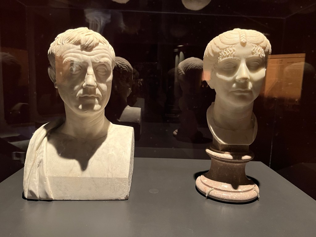 The villas of the wealthy must have been fantastically excessive. The tiled furniture, paintings, and decor were skillfully done. We like to pretend that we are so much more civilized, but artifacts show a slice of comfortable sophistication. We linger as we wait to enter a room that requires a timed entry.