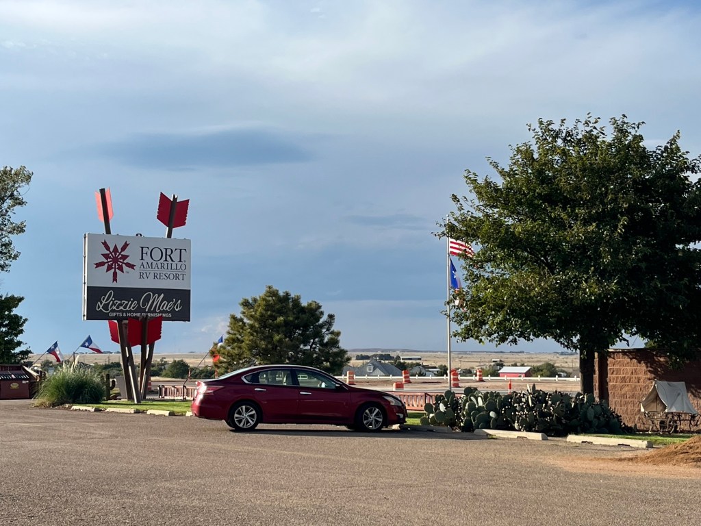 Amarillo, Texas is usually a drive through city. We spend the night, eat a meal and head for points further down the interstate. This trip we decide to stay a few nights. We select Fort Amarillo RV resort solely for its location. The roads in Amarillo are confusing with one way corridors that run parallel to the interstate and side roads that lose lanes and veer apart with little warning. So we think this easy to navigate location with just two turns (also in close proximity to fuel) makes sense.