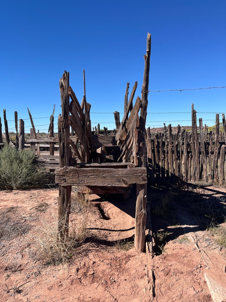 Locals sell pumpkins from trucks near the back door. I can’t help but wander the grounds. I keep my eyes open for rattlesnakes. Abandoned wooden livestock chutes remind me that sheep stations used to be big business here. I guess the park service isn’t in the livestock market.
